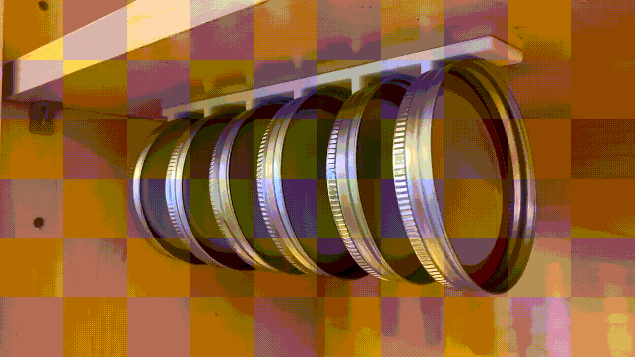 A magnetic rack that stores, dries, and organizes your Mason/Ball jar lids. No more messy drawers or soggy stacks...